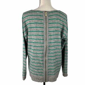 Halogen Sweater Women Medium Cashmere Blend Striped Full Back Exposed Zipper