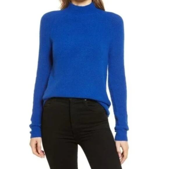 Halogen Sweater Women X Small Blue Surf Mock Neck Cozy Wool Blend