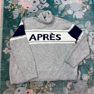 Halogen Sweater Womens XL Gray Apres Ski Turtleneck Long Sleeve Pullover Knitted preppy Colorblock graphic text