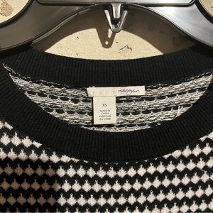 Halogen Sweater Womens XS Long Sleeve Geometric Design Black White Cotton Modal
