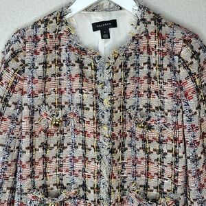 Halogen Tan Elsie Tweed Multicolored Frayed Edge Jacket Size Medium
