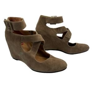 Halogen Tan Suede Crisscross Strappy Ankle Buckle Strap Booties Wedge Pumps 8.5M