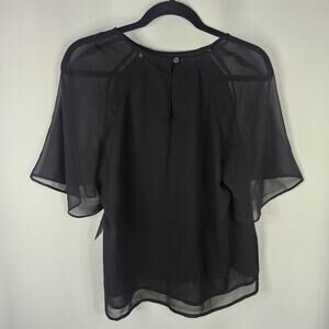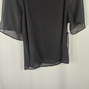 Halogen Top NWT Black Sheer Short Sleeve Crochet Trim Pullover Women's Size M