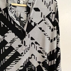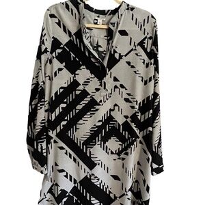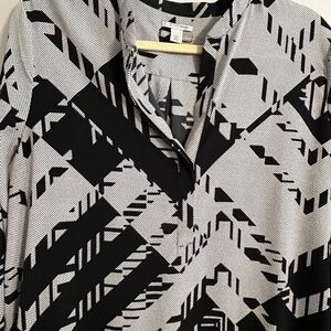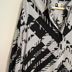 Halogen Top Women L Black Abstract Neutral Minimalist Preppy Boho Western Retro