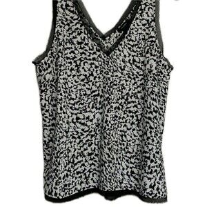 Halogen Top Women Medium Sleeveless Sheer Raw Trim Hem Black & White Layers M