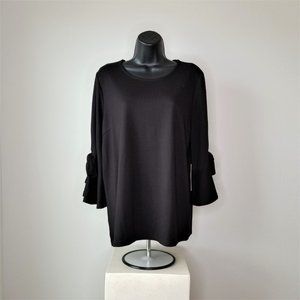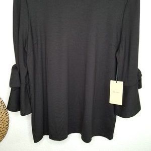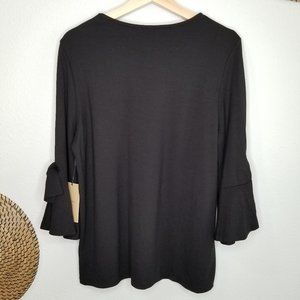 NWT Black Halogen Tshirt Blouse with 3/4 Ruffle Sleeves and Ties. Size Medium.