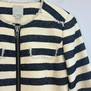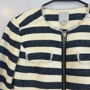 Halogen Tweed Nautical Striped Navy Blue & Ivory Cropped Blazer Size 0