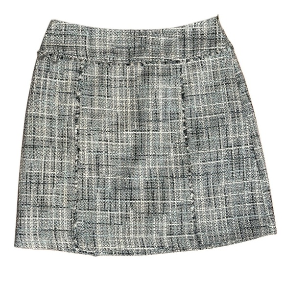 Halogen Tweed mini midi short a-line blue cream gray skirt sz 4