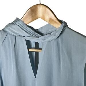 Halogen Twist Neck Sleeveless Satin Career Blouse Top Light Blue Women's XL NWOT
