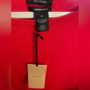 Halogen Vibrant Red Cashmere-Wool Blend Crew Neck (Medium) Quiet Luxury Sweater