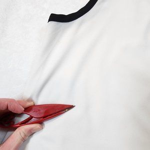 - Cowl neckline with black armhole trim