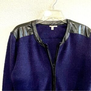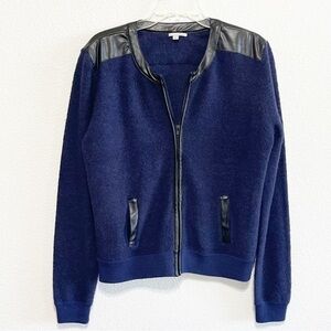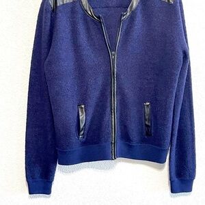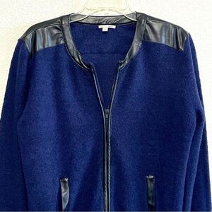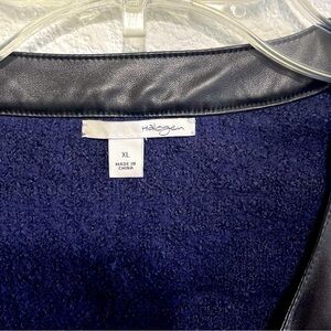 Halogen Woman Navy Blue Merino Wool Boucle Knit Jacket Size XL