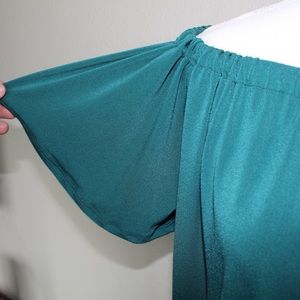 Halogen Womans Off Shoulder Ruffle Green Short Sleeve Top - Size Medium