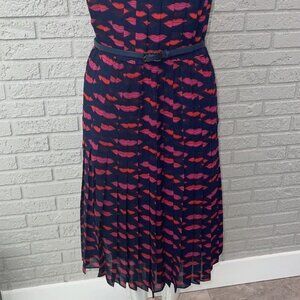 Halogen Women Pleated Multi Color Lips Motif Dress Size 0