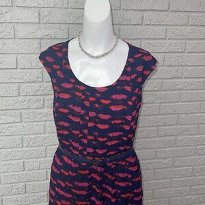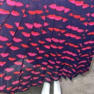 • Halogen Women Pleated Multi Color Lips Motif Dress Size 0
