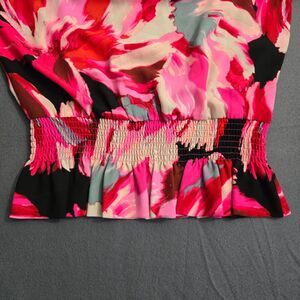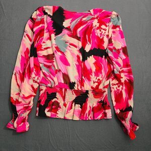 Halogen Women S Pink Floral V Neck Long Sleeve Smocked Waist Blouse