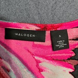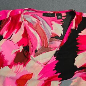 Dress up or dress down with the Halogen Women's Pink Floral V-Neck Blouse, a versatile addition to your wardrobe that's perfect for any casual, business, or travel occasion. Its charming floral pattern and pleated accents add a touch of femininity, while the V-neck and long fitted sleeves offer a classic and comfortable silhouette. Crafted with a soft polyester fabric and a rayon blend, this blouse features an elastic waist and wrist for a flattering fit, making it ideal for the summer, spring, or fall seasons. The blouse is machine washable, ensuring easy care and maintenance. Whether paired with slacks or denim, this blouse is a stylish choice for a day out or a day at the office.