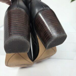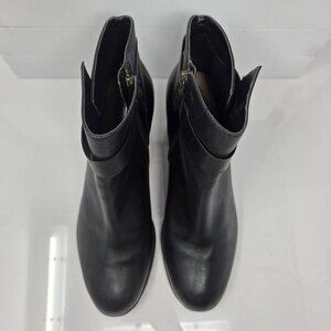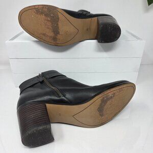 Halogen Womens 8.5 Boots Leather Black Ankle Booties Block Heel Strap Almond Toe