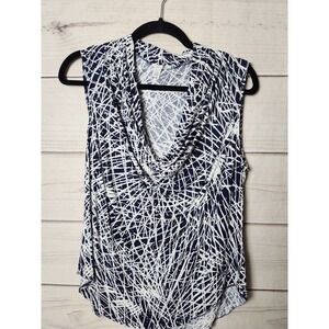 Halogen Womens Abstract Cowl Neck Tunic Tank Top Blue White Size Large