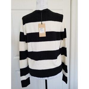 Halogen Women's Basic Crew Neck Long Sleeves Black Ivory Stripe Sweater Size M