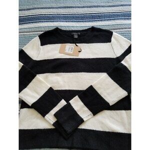Halogen Women's Basic Crew Neck Long Sleeves Black/Ivory Stripe Pull Over Sweater Size M