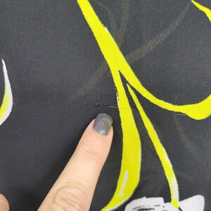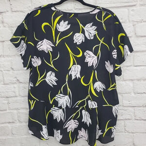 Halogen Women's Black Neon Yellow/White Floral Short Sleeve Ruffle Hem Top Sz M