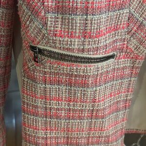 Chic plaid blazer with zip pockets. Perfect for any occasion.