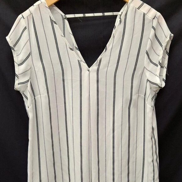 Large Halogen women’s blouse, v-neck, white with black stripes