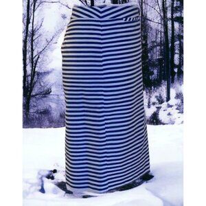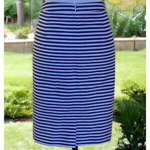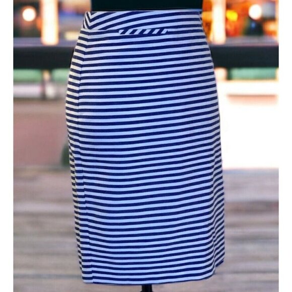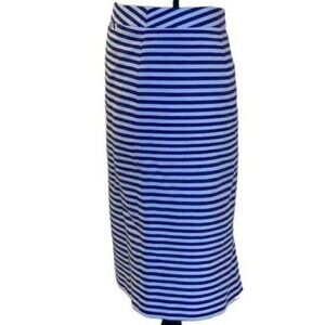 Halogen Women's Blue White Striped Straight Pencil Skirt Size 14 Lined Back Zipper Closure Slit Classy