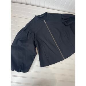 Halogen Women’s Cropped Balloon 3/4 Sleeve Black Jacket Zip Up Outdoor Size XS