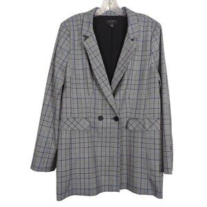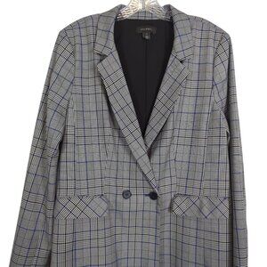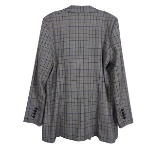 Halogen Womens Gray Black blue Plaid Double-Button Blazer career sz XL
