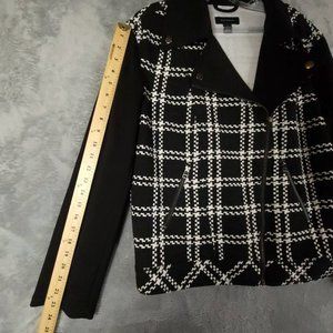 Halogen Womens Moto Jacket Black White Plaid Full Zip Stretch Collar XS New