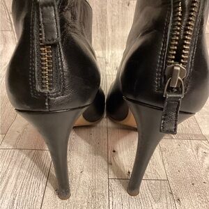 Halogen Women’s Peep toe Booties Heels Black Leather upper Zip on Back Size 8 M pre owned in great condition