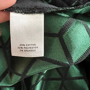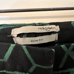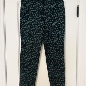 Halogen Women's Quinn Fit Ankle Pants Geo-Metallic Pattern Green Black, Size 10