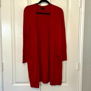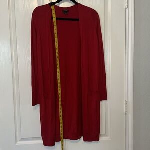 Halogen Women’s Red Open Long Cardigan Size XS With Front Pockets