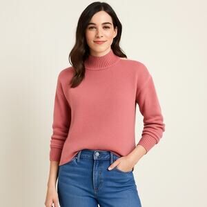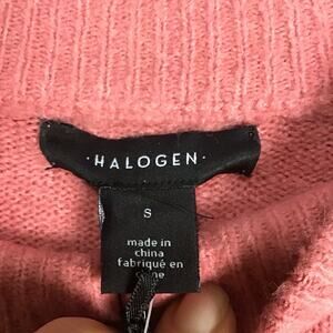 Halogen Women’s S Pink Mock Neck Sweater White Accent Solid Knit Pullover NWT