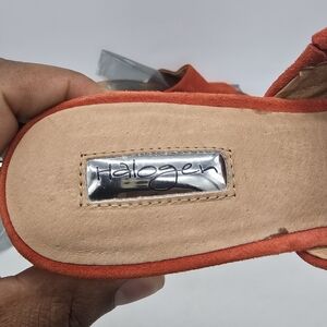 Halogen Women's Shoes 10M Rust Orange Suede Block Heel Mule Sandals Open Toe