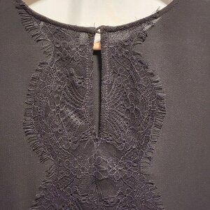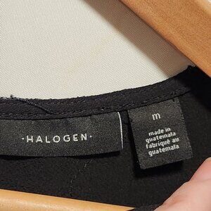 Halogen Women's Size M Black Lace Cap Sleeve Crew Neck Blouse Hi-Low Hemline
