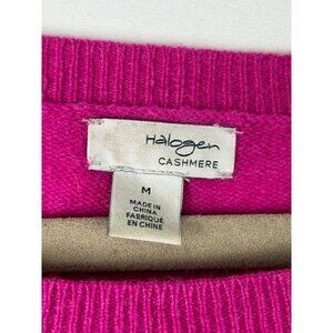 The Halogen Women's Size Medium 100% Cashmere Sweater in Pink/Gray is a classic pullover style with a striped pattern and tight-knit construction. Made from luxurious cashmere material, this sweater features long sleeves with raglan sleeves and a crew neck neckline for a comfortable fit. Perfect for casual or business occasions, this lightweight and breathable sweater is ideal for the winter, fall, and spring seasons. The timeless preppy style and timeless design make this sweater a versatile and stylish addition to any woman's wardrobe.