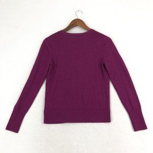 Halogen Women's Size Medium Purple 100% Merino Wool Knit V-Neck Cardigan Sweater