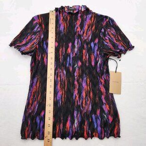 Halogen Womens Size Small Black Pink Purple Short Sleeve Lettuce Edge Blouse