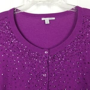 Halogen Womens Size XL Sequin Cardigan Sweater 3/4 Sleeve Purple Cotton Viscose