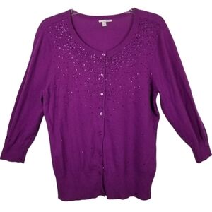 Halogen Womens Size XL Office Siren Sequin Cardigan Sweater 3/4 Sleeve Purple