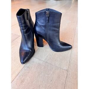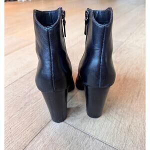 Nordstrom Halogen Women's sleek Black Leather Pointy Toe Stack Heel Ankle Boot Bootie Sz 7. City girl style fall essential! Heel height is 3.75". Side zip. Pre-loved condition; Heels show wear in multiple locations, *please look at all photos carefully for flaws*
