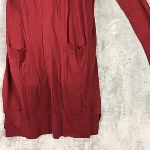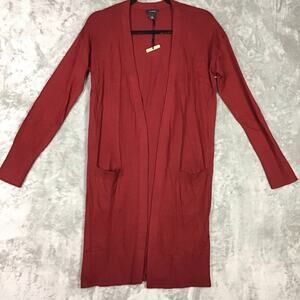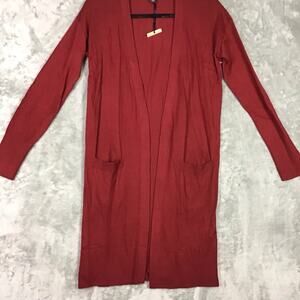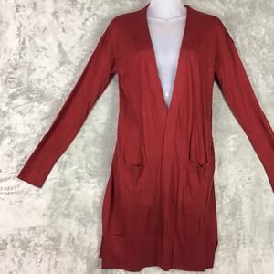 Halogen Womens Small Open Front Long Cardigan Sweater Brick Red Pockets Knit