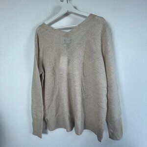 Halogen Womens V-Neck Sweater XXL Beige Oatmeal 100% Cashmere Pullover New $98