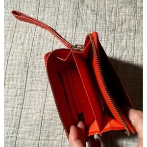 🧢 Brand: Halogen 📐 Size: Compact wristlet wallet (see photos for dimensions) 🎨 Color/Design: Red-orange leather with gold-tone details🧵 Material: Genuine leather 🏷️ Condition: Excellent pre-owned condition