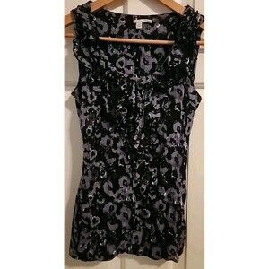 Halogen Womens XS Top Sleevless Ruffle Black Gray Summer Blouse