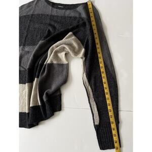 The Halogen Wool Blend Sweater in size L features a classic colorblock design in black, white, and gray hues. This lightweight and soft sweater is perfect for travel, casual occasions, and the fall, winter, and spring seasons. With a tight-knit wool blend fabric and a regular fit, this pullover sweater provides warmth, comfort, and breathability. The long sleeves and round neckline make it a versatile and stylish addition to any woman's wardrobe.