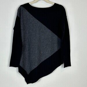 Halogen Wool Cashmere Black Grey Colorblock Asymmetrical Sweater S